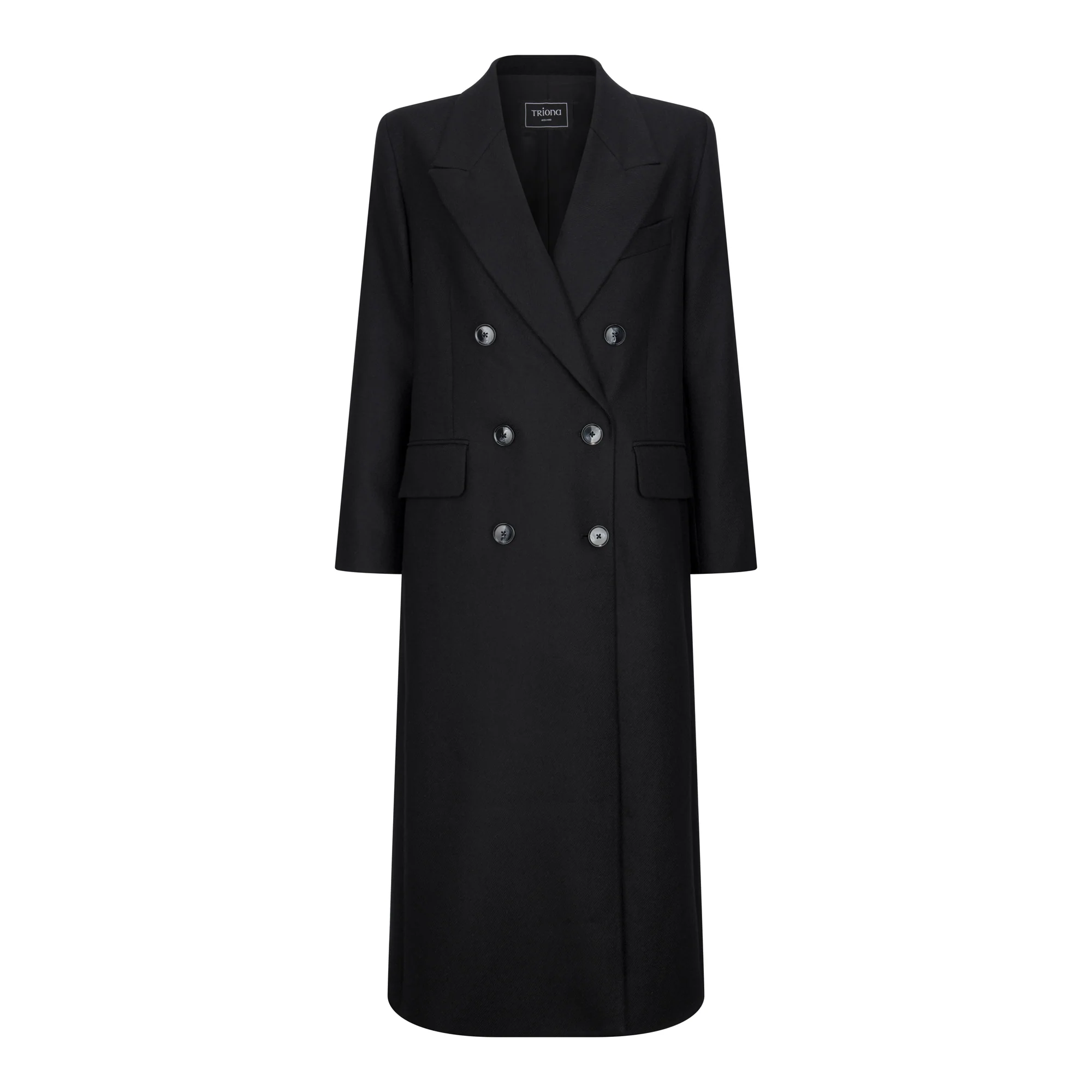 Featuring a classic full-length cut and a distinctive six-button double-breasted front, the Niamh Coat offers a flattering silhouette that combines traditional charm with modern refinement.