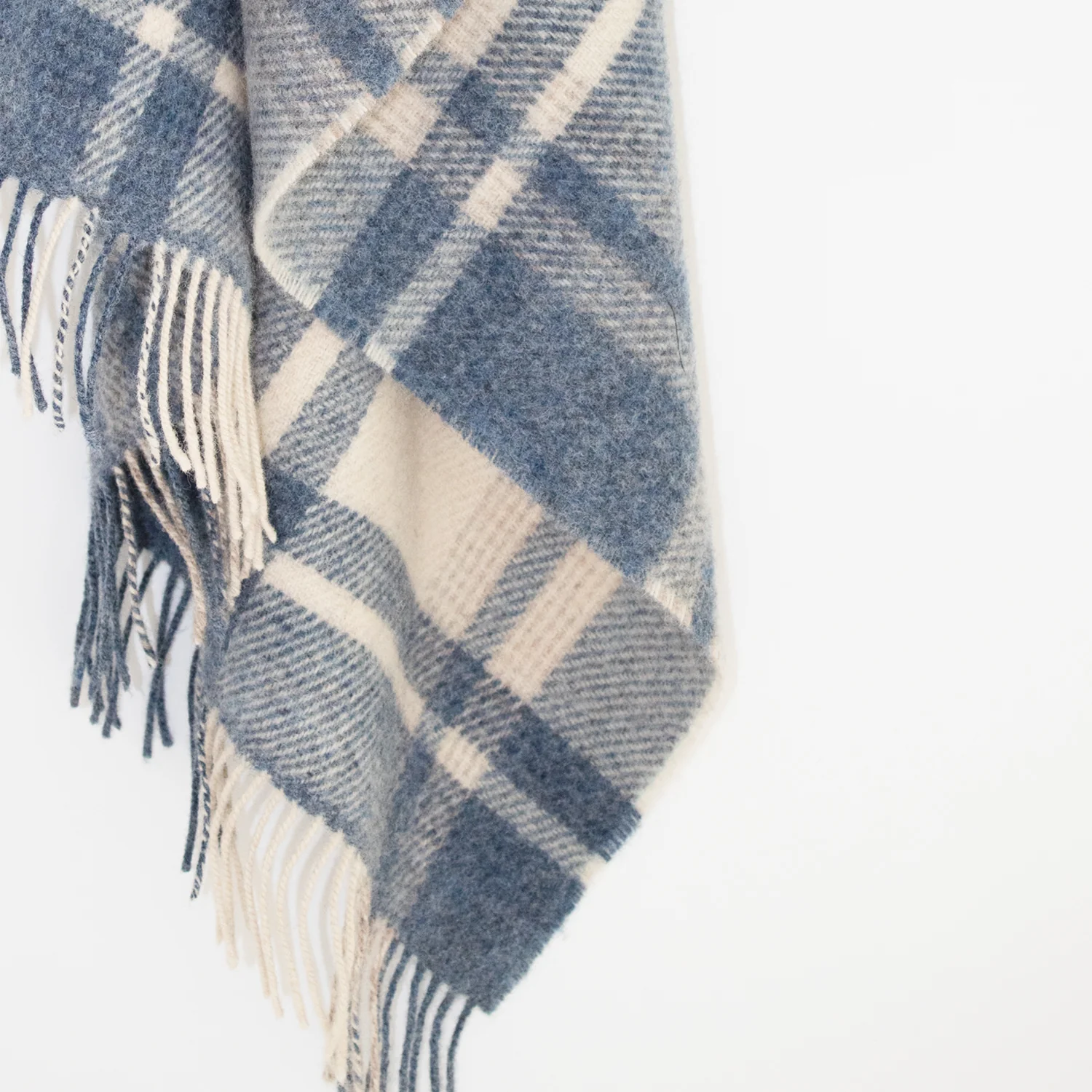 Blue & Cream Check Large Wool Blanket
