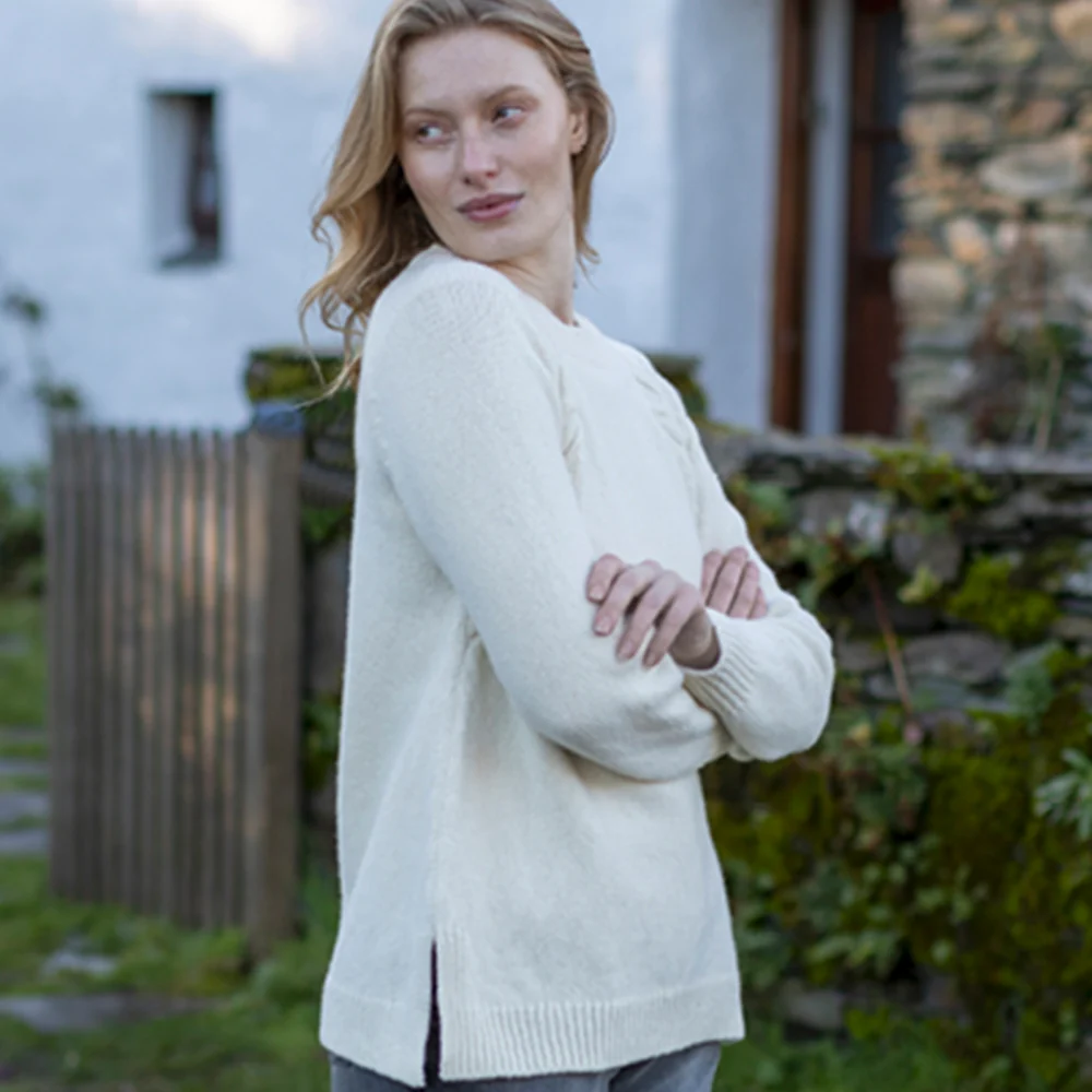 Fisherman Out of Ireland exemplifies contemporary Irish knitwear, and their Ecru raglan sleeve sweater is a testament to both comfort and style.